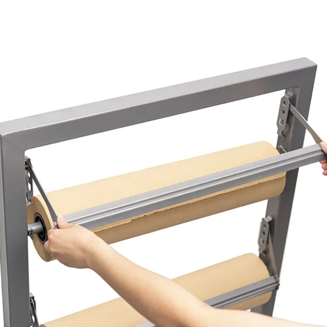 Has a sturdy metal frame with a superior cutting blade for easy cutting of kraft paper and counter rolls. The dispenser is ideal for wrapping parcels, boxes and gifts. Components are not water-resistant.