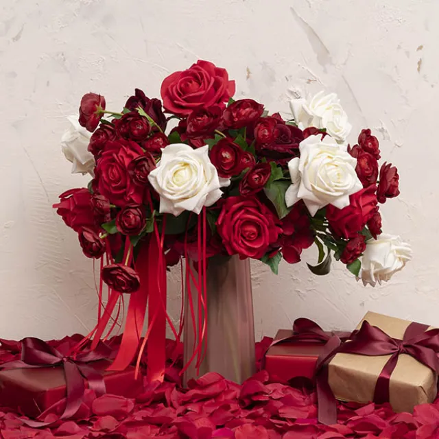 This rose’s head measures approximately 12cm when fashioned. The stem measures 65cm tall. This product is sold individually.