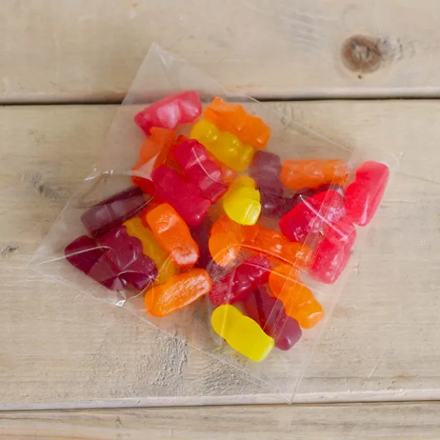 They are made from BOPP (Biaxially Oriented Polypropylene), a high-clarity, durable plastic that is widely used in food packaging due to its moisture-resistant and non-toxic properties.