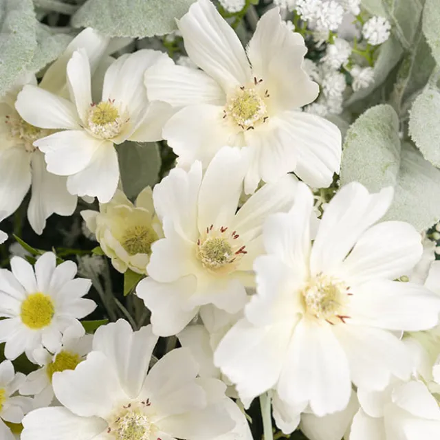 The Cosmos spray comes with 5 flower heads and it measures 62cm tall. Each of the flowers heads measure 6 to 8cm in diameter with the buds measuring 3cm. This pretty flower is ideal in flower arrangements.