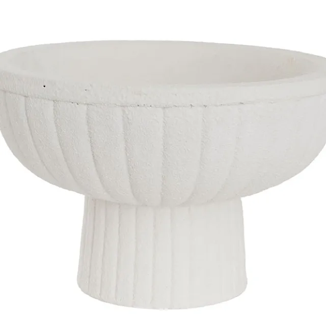 This compote stands 25cm tall and has a base diameter of 19cm. It also features a top outer diameter of 39cm and an inner diameter of 34cm. The inner depth of this planter is 14cm. This item is sold individually.