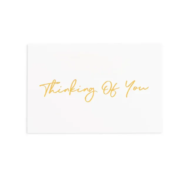 A single-sided non foldable card in white that features a Thinking Of You message in luxe gold foil.