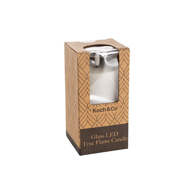 Be mesmerised by the magic of LED event candles. This Glass Trueflame™ Flickering LED White pillar candle gives a cosy ambiance like a real candle. It is a safe alternative to decorate your home, weddings and any special events. Featuring a glass holder filled with real wax, long battery lighting life and a realistic flameless glow.