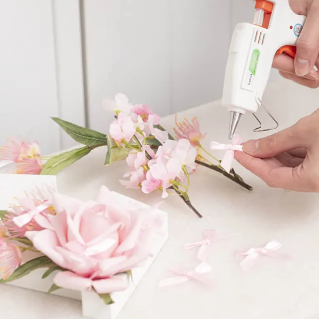 Sold as a pack of 24, this bow is made with 10mm single-face satin ribbon. The bow loops create a 3.5cm wide bow. The tails are approximately 3cm long and can be trimmed to suit your needs.
