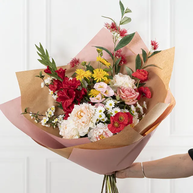 This spray measures 110cm in height and includes eight blooms of Corymbia Ficifolia. It is sold individually.
