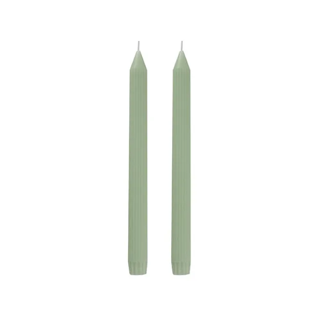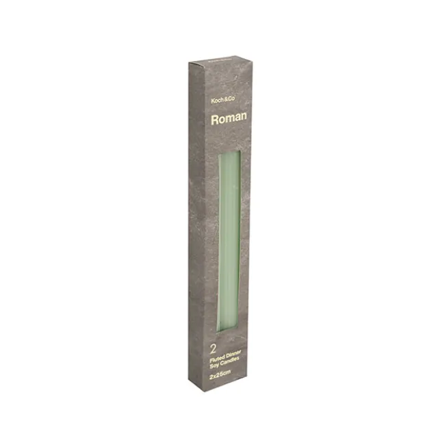 Our Roman Fluted Dinner Candle in Pale Sage is a plain-coloured ribbed dinner candle that will bring textural interest to your event and home decor. Pair with other products from our Roman Fluted candle range for a complementary cluster. This candle is not dripless and is available in packs of 2.
