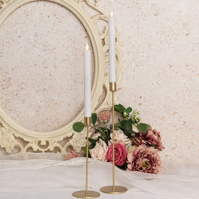 The candle stands 24cmH and have a 2.2cm diameter at the base. Available in a pack of 2. These candles require 2 x AAA batteries, which are not included. This candle is compatible with our Trueflame™ remote control.