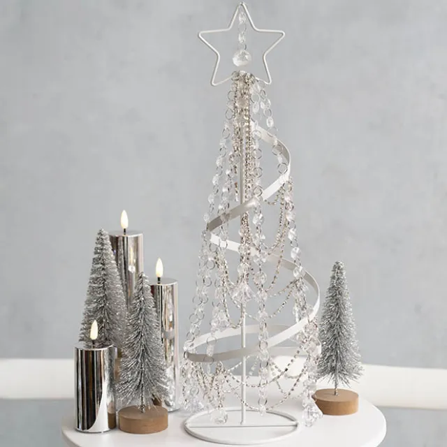 At the top of each garland is a thin metal hoop that makes hanging simple and secure. The garland culminates in a larger round clear plastic ‘crystal’ sphere, which adds a touch of sophistication and helps weigh down the garland for a magical icicle effect. Perfect for creating shimmering, wintry displays, these garlands bring a touch of sparkle and elegance to your Christmas decorations.