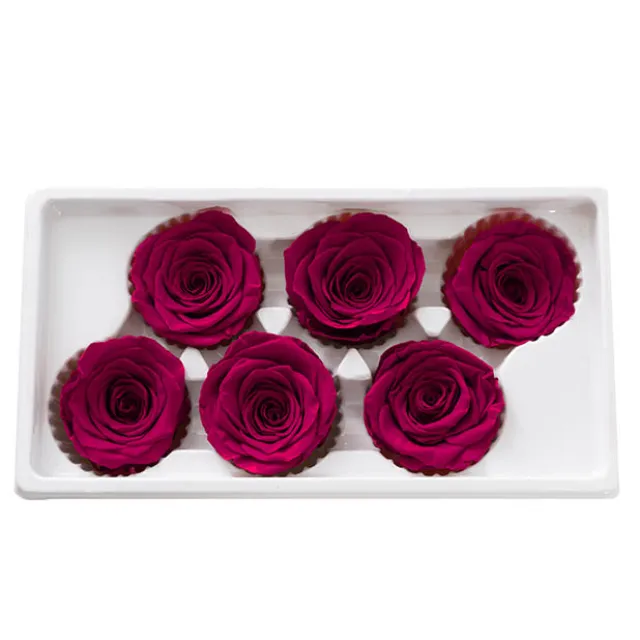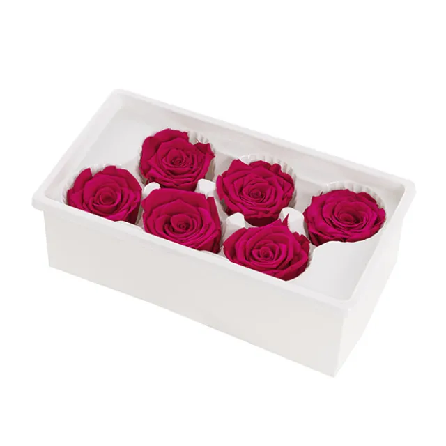 Available in a pack of six, each rose head measures 5-6cm in diameter. Styling option: arrange these preserved roses using our gold flower stems SKU67080035 for an extended length and increased versatility for styling.