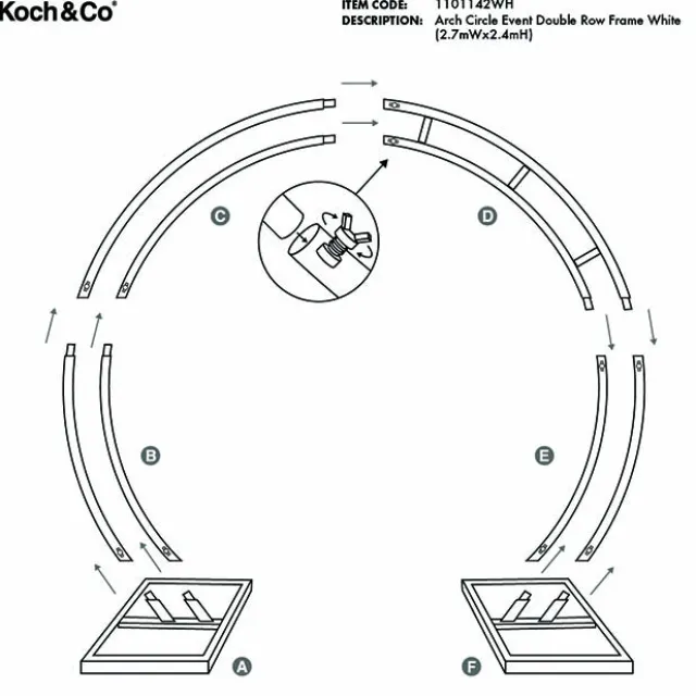 This backdrop measures an impressive 2.7m in width and 2.4m height. The arch comes in 4 parts and 2 base pieces. This backdrop is sold individually.