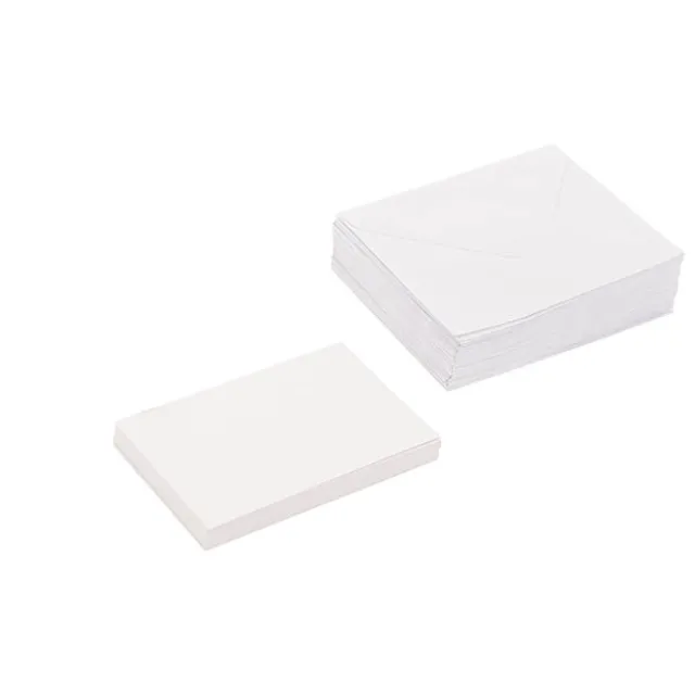 There are 25 pre-scored and folded cards per pack, along with 25 white envelopes. Sold as a complete pack of 25 cards and envelopes, the cards measure 10cm wide and 6.5 cm tall when folded with side fold and 6.5cm wide and 10cm tall with top fold. Card is 250gsm.