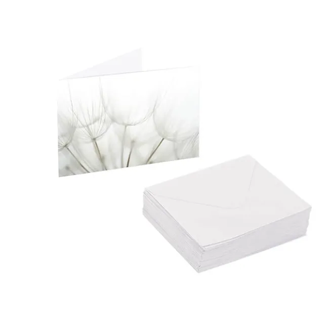 There are 25 folded cards per pack, along with 25 white envelopes. Sold as a complete pack of 25 cards and envelopes, the cards measure 10cm wide and 6.5cm tall when folded.