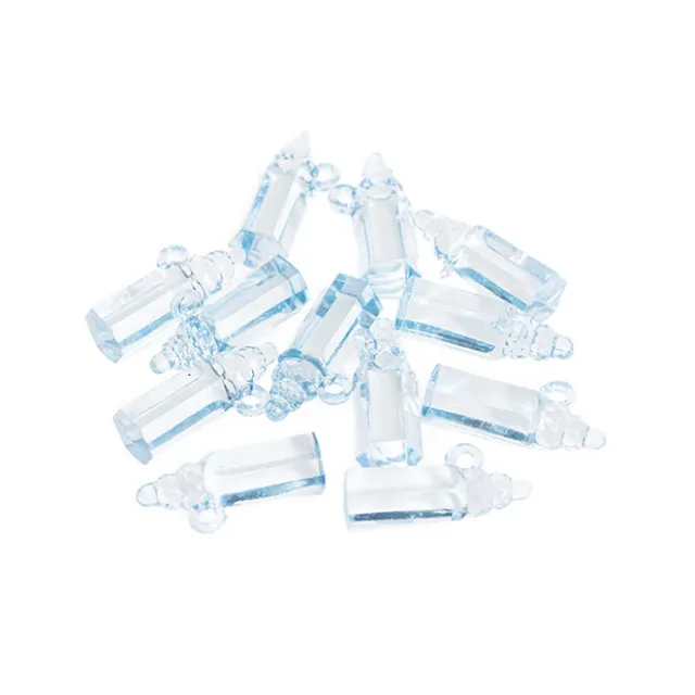 These acrylic Baby Blue Bottle Baby Charms are well-suited to decorating gift packaging, hampers, as well as bombonieres. Available in a range of shapes suited to a range of event types, this baby bottle charm is particularly well suited to newborn baby, First Birthday, or baby shower gifts.