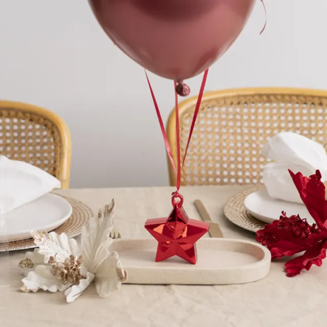 Weighs about 140 grams and can hold up to five 18″” helium balloons and up to 20 – 25 12″” latex balloons. It has a tiny loop on the top where you can tie the ribbons of your balloons. Such a pretty decorative piece for your table settings or any space.