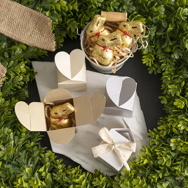 They are available in a pack of 20 and each comes flat-packed in one piece. You just fold together and tuck in. All fold lines are scored for easy assembly. 250gsm. Recyclable. This box will comfortably hold 10-12 sugared almonds.