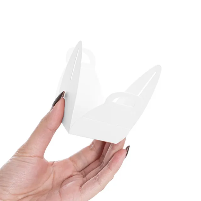 They are available in a pack of 20 and each comes flat-packed in one piece. You just fold together and tuck in. All fold lines are scored for easy assembly. 250gsm. Recyclable. This box will comfortably hold 6-8 sugared almonds.