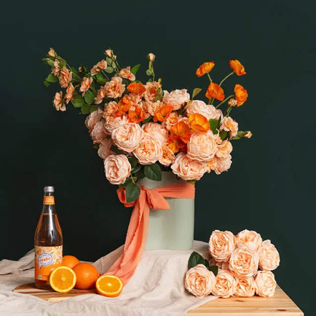 This bouquet features ten flower heads, each 9cm in diameter. Standing at a total height of 45cm, this product is sold individually.
