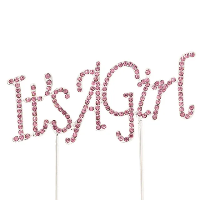 Made from 2 metal picks with writing connected, featuring pink rhinestones on a silver background, making it very sturdy.