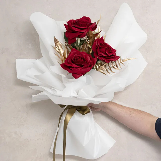 Complement your flowers by wrapping them in a clear frosted cello. Pair with contrasting colours for a striking effect.