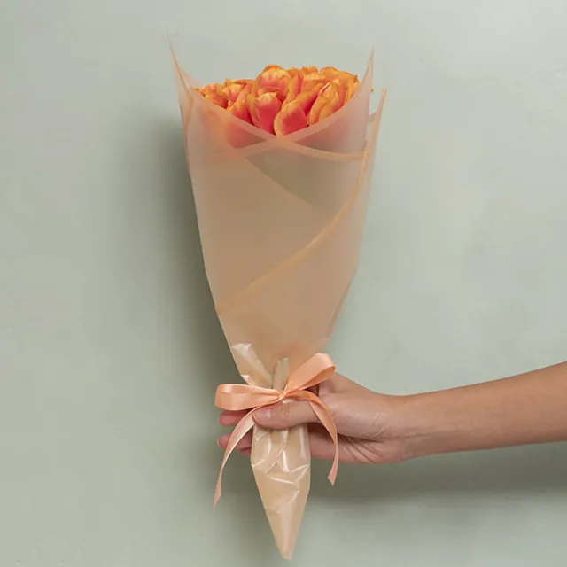 It will wrap them in an Apricot Peach frosted hue cello with a darker tone apricot silhouette border and frame your flowers perfectly.