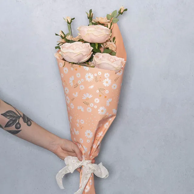 Suitable for wrapping floral bouquets, this print of wrap is particularly well-suited to an Easter, cottage-style, or Sprintime theme.