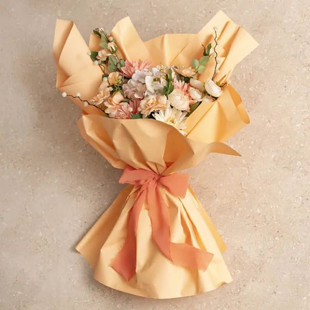 Pair with peaches and greens and other assorted flowers and ribbon for a peach look and pair with oranges for an apricot look.