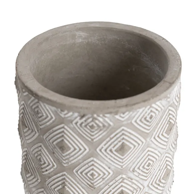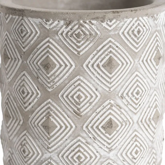 These charming cement cylinder pots have a unique multiple diamond pattern on the outside. Suitable for small flower arrangements, plants and succulents. Pots are waterproof concrete with a cement finish.