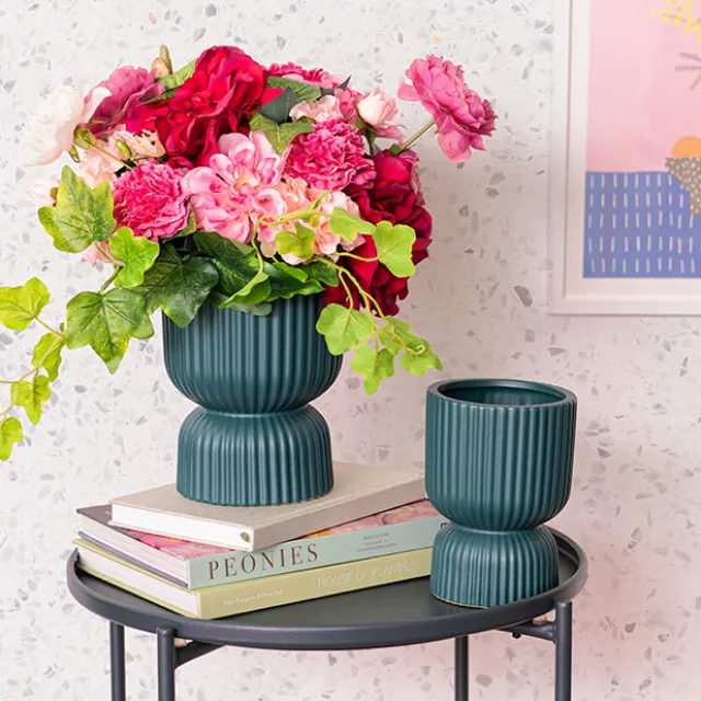 This piece measures 12cm at its widest point and 16cm tall. The external base diameter measures 10cm wide. Each vase is sold individually and is available in two sizes and four other complementary colours.