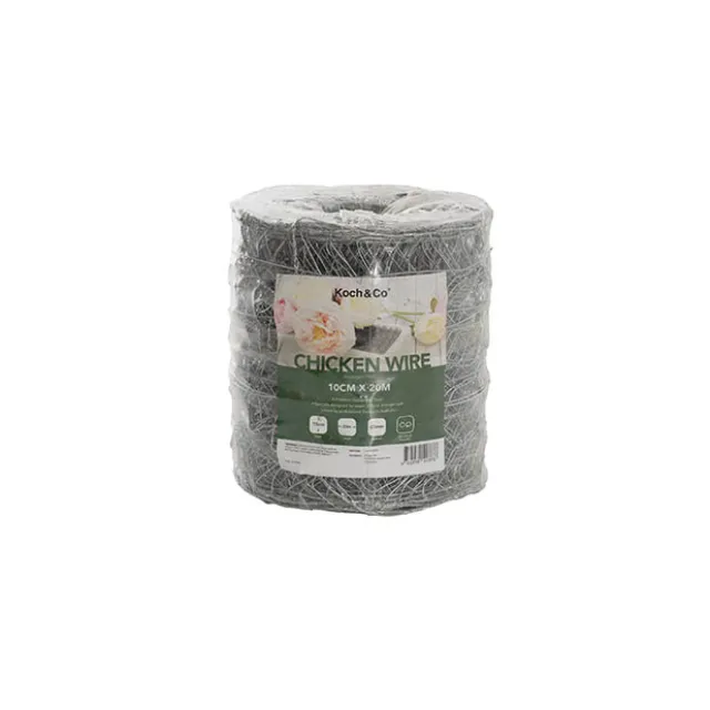 Rust-resistant for up to one year, this 24-gauge chicken wire is easy to cut, shape, and secure. This product is designed to facilitate floristry design in small-sized projects, such as the creation of pillows for use with vases, wreath creation, large bouquet creation, and more.