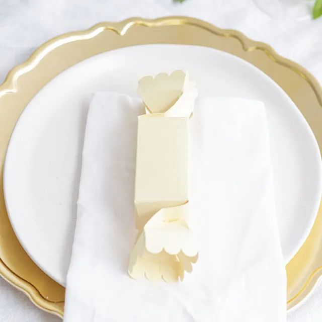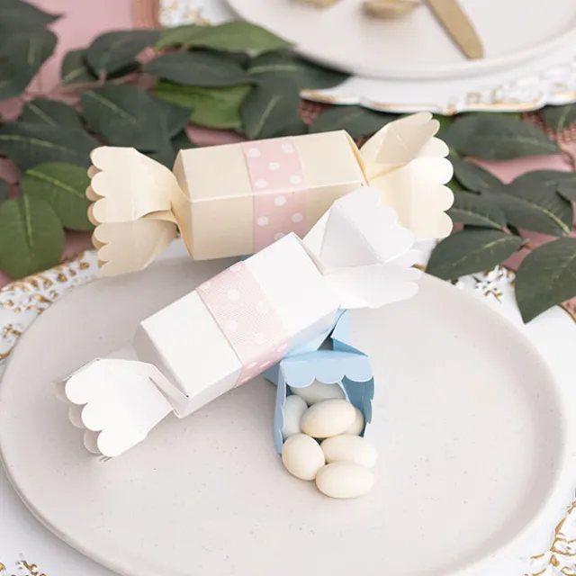 They are available in a pack of 20 and each comes flat-packed in one piece. You just fold together and tuck in or twist (bonbon style). All fold lines are scored for easy assembly. 250gsm. Recyclable. This box will comfortably hold 16 sugared almonds.
