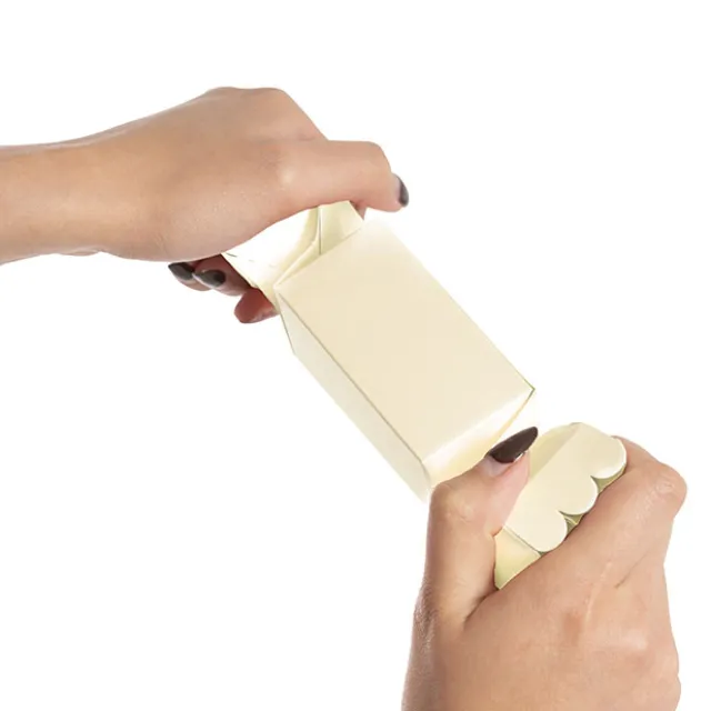 They are available in a pack of 20 and each comes flat-packed in one piece. You just fold together and tuck in or twist (bonbon style). All fold lines are scored for easy assembly. 250gsm. Recyclable. This box will comfortably hold 16 sugared almonds.