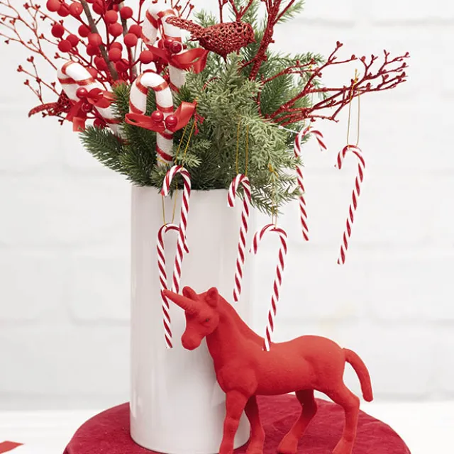 Available in a pack of 5, these candy canes measure 13cm tall. These decorations include thin metallic cord, ready to hang.