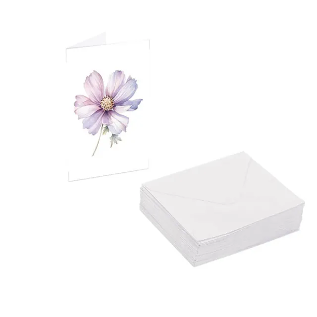 There are 25 folded cards per pack, along with 25 white envelopes. Sold as a complete pack of 25 cards and envelopes, the cards measure 6.5cm wide and 10cm tall when folded.