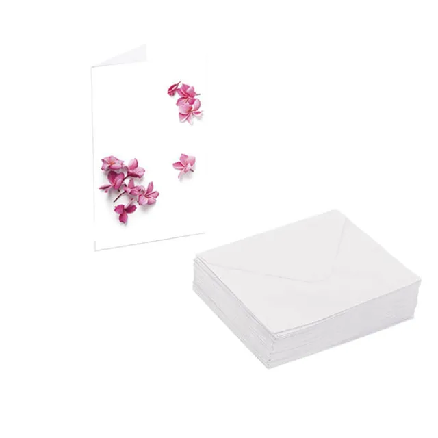There are 25 folded cards per pack, along with 25 white envelopes. Sold as a complete pack of 25 cards and envelopes, the cards measure 6.5cm wide and 10cm tall when folded.
