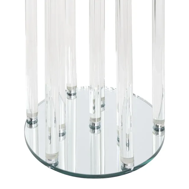 Assemble by screwing candle holder pieces into mounts on the base plate. Base plate has a glass mirror finish and measures 25cm x 25cm. Entire structure made of glass, excepting candle stick poles, which are made of acrylic. Sold individually.