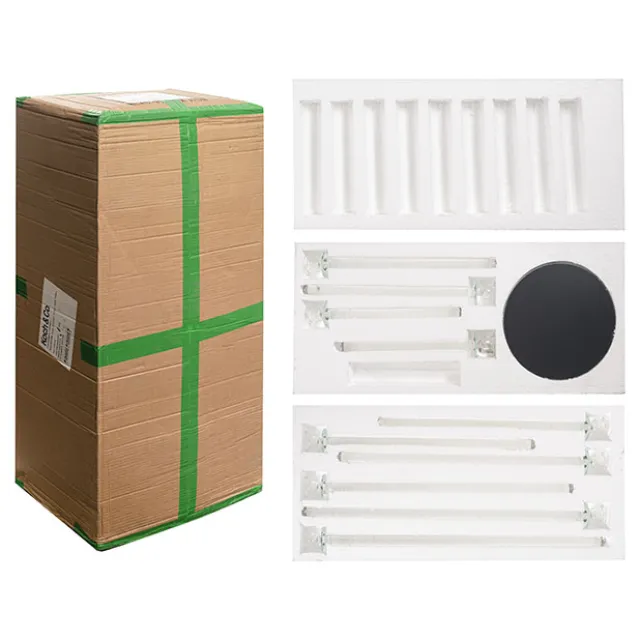 Please note, this candelabra can also be used without glass hurricane sleeves attached. Glass hurricane sleeves sit neatly on candle holders and replacement sleeves are available (SKU: 1101098CL). Each glass sleeve measures 6cm in diameter and 30cm tall. The tallest candle holders (without hurricane sleeves attached) measure 83cm tall. With hurricane sleeves attached, the candelabra measures 109cm at the tallest point. This candelabra accommodates 10 taper candles with a diameter of 2cm or less.