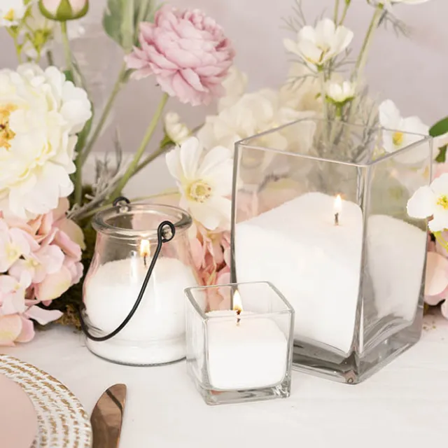 To use candle sand, simply pour the crystals into a candle-safe vessel, insert the wick, and light for long-lasting illumination at your next event. When the flame is extinguished, remove the melted wax on the topmost layer, and store the remaining candle crystals for future re-use.