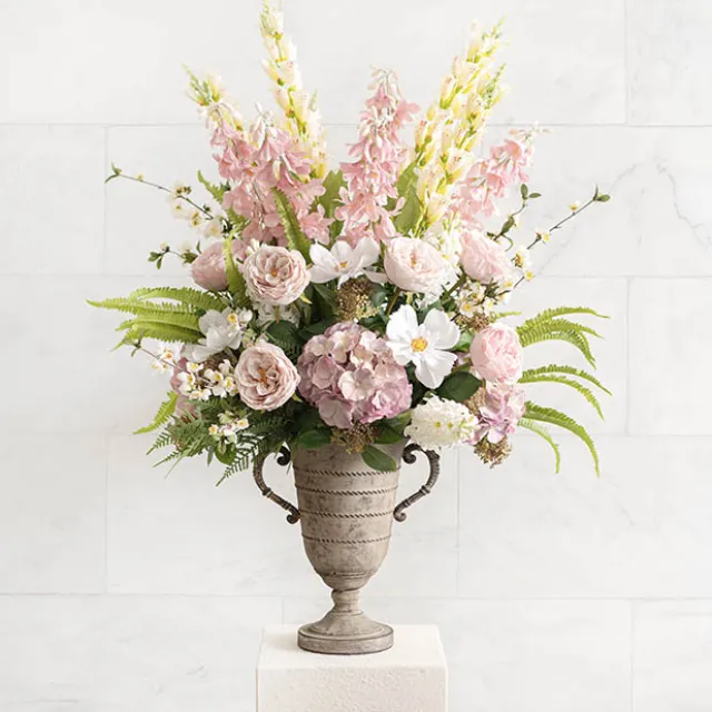 This vase is is water resistant, but not waterproof. We recommend using a liner when using with wet products. This vase is sold individually and measures 30.5cm at its widest point, 24cm at its narrowest point, and 35.5cm tall.