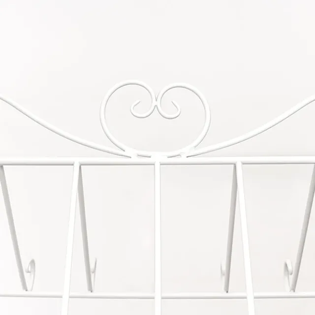 Featuring a rectangle tray measuring 88cm x 50cm which can be used as a dessert table or to show off your stunning floral arrangements. On the top, the cart has nine hooks on either side where you can hang flowers and greenery in pots or drape garlands throughout. The wheels and handle do not move once assembled. The display cart comes flat packed with easy to assemble instructions. Made from metal material.
