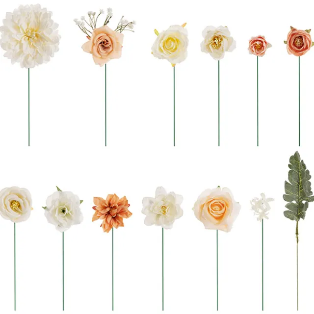 Let your creativity run free with DIY Mixed Flower Arrangement Box. A curated selection of complementary cream and beige flowers with wire stems, this box is ideal for a range of DIY projects, such as vase arrangements, putting finishing touches on a wreath, an event backdrop or balloon garland, flower crowns, bouquets, cake flowers, gift packaging, and more.