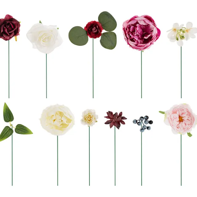 Let your creativity run free with this DIY Mixed Flower Arrangement Box. A curated selection of complementary white, cream, pale pink, and burgundy red flowers with wire stems, this box is ideal for a range of DIY projects, such as vase arrangements, putting finishing touches on an a wreath, event backdrop or balloon garland, flower crowns, bouquets, cake flowers, gift packaging, and more.