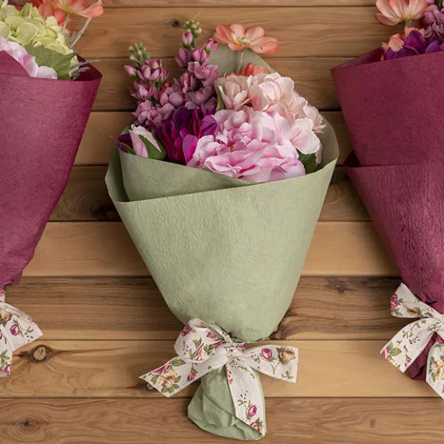 This thick, 50gsm textured paper displays a subtle grain and sheen, making it a versatile choice for layering with other wraps, or using on its own. This paper folds cleanly, for crisp wrapped edges on your gifts.