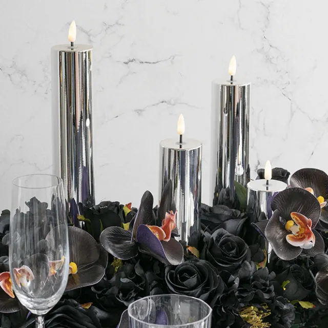 This candle runs on 2 x AA batteries, which are not included. This candle is sold individually and measures 5cm in diameter and 26cm tall.