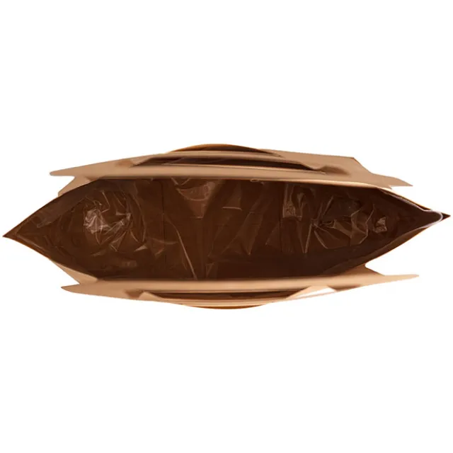 Internal measurements of this bag measure approximately 11cm deep at the top, 9.8cm deep at the base, 29cm wide at the top, 21cm wide at the base, and approximately 18.2cm tall in the middle, and 16.2cm tall at each end. The lower window in the handle for flowers to poke through measures 13.5cm tall and up to 10.5cm wide. This product is available in packs of five, also in white, and in a smaller size