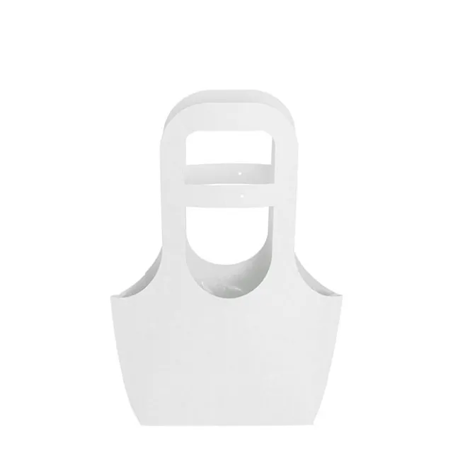 Internal measurements of this bag measure approximately 9cm deep at the top, 7cm deep at the base, 22.3cm wide at the top, 16.8cm wide at the base, and approximately 13.8cm tall in the middle, and 11.5cm tall at each end. The lower window in the handle for flowers to poke through measures 8.7cm tall and up to 8cm wide. This product is available in packs of five, also in brown, and in a larger size.