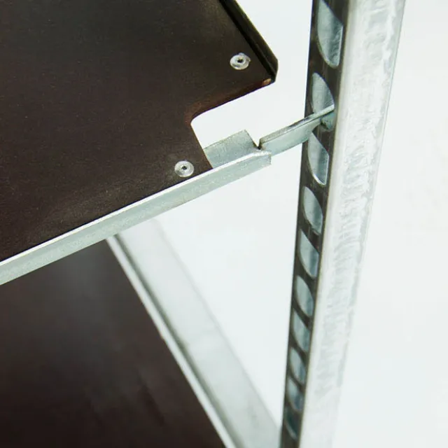 The trolley comes flat packed and is easy to assemble. It has four removable steel posts for shelves to be adjusted to the required levels. Three durable metal framed plywood shelves are included.