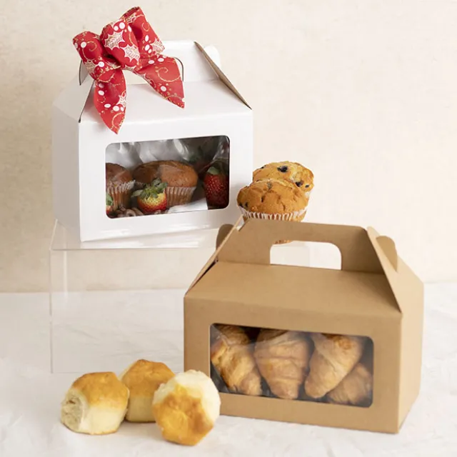 Can be used for sweet or savoury fresh food, canned/dry goods or other gifts. When using with patisserie food, please use with Food Grade shred or paper. If using with greasy or oily food, please use wax proof paper and/or aluminium foil along the base. Not recommended for use with hot foods as the window will fog up.