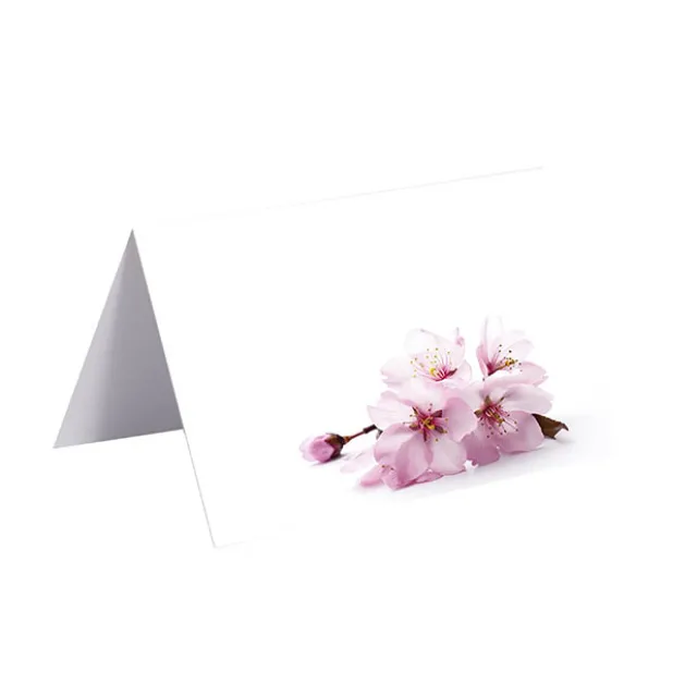 This top folding card has a cluster of pink cherry blossoms in the right corner on the front creating a striking gift card.