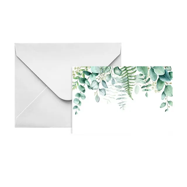 This top folding card has a top border of Eucalyptus leaves on the front creating a striking gift card.