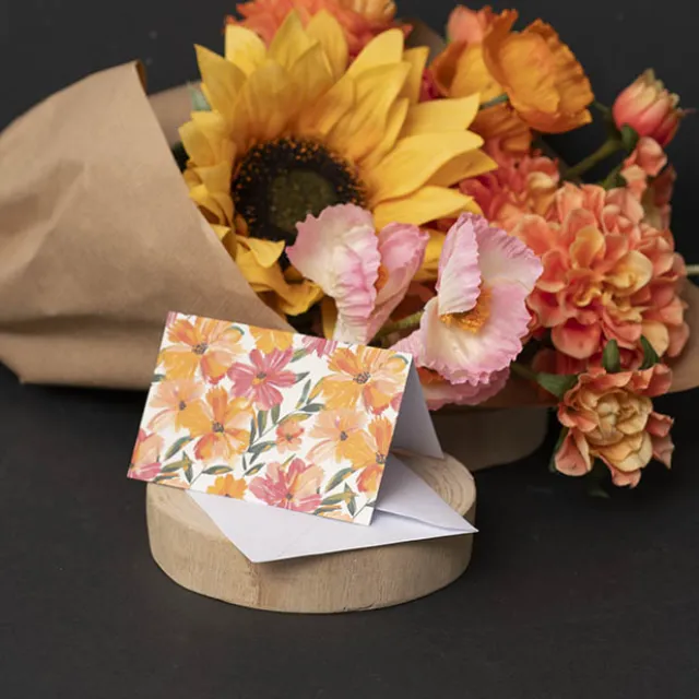 This pack includes 25 folded cards, along with 25 white envelopes. Each card measures 10cm wide, 6.5 cm tall when folded, 13cm when flat.